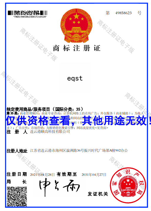 祝賀公司商標(biāo)【乙高】和【eqst】注冊成功